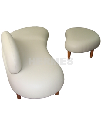 madera lustrada. Medidas (Ancho x Profundidad x Altura): Sillón : 225 x 106 x 65 cms. Ottoman: 120 x 70 x